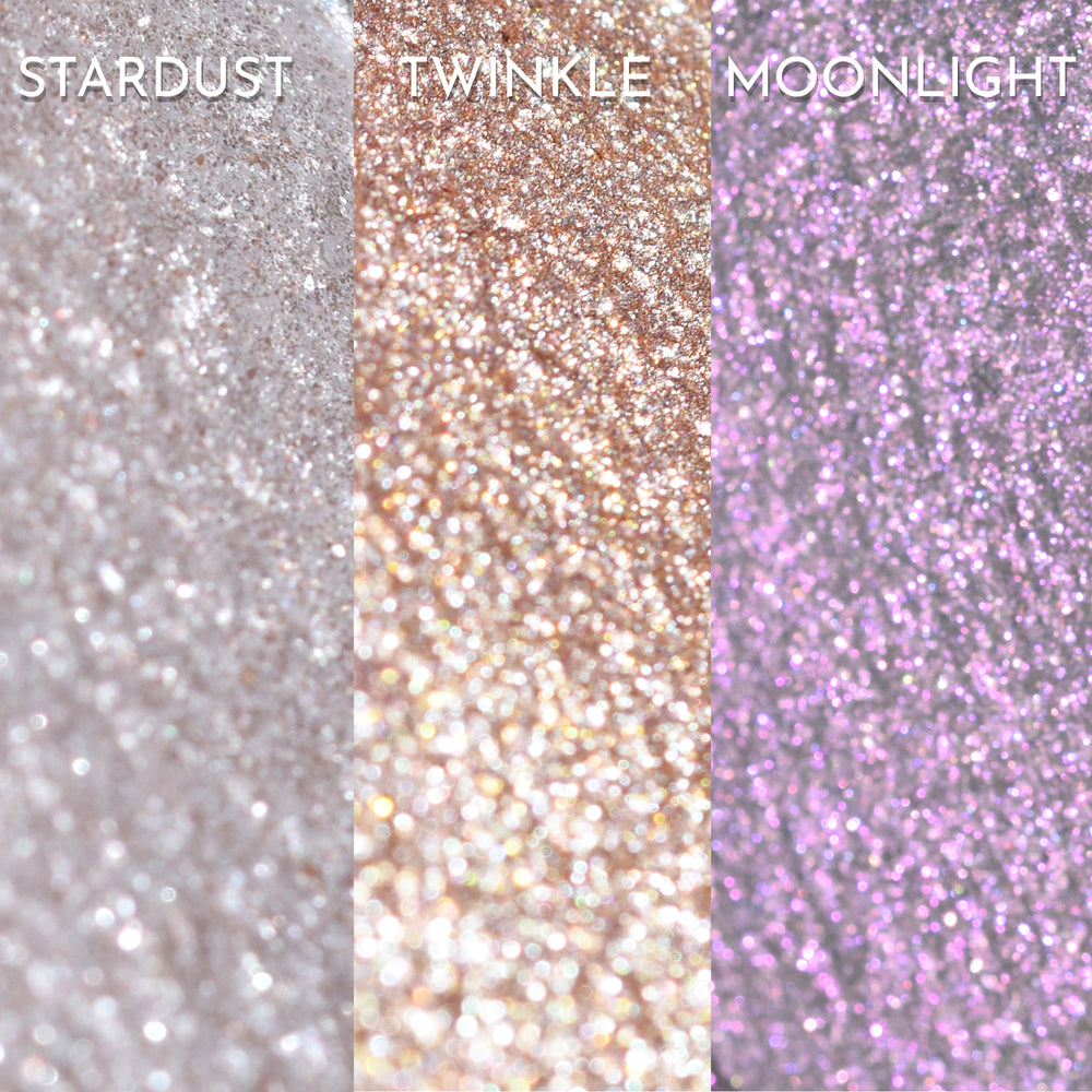 Acest iluminator uimitor va ofera o atingere perfecta de particule de glitter fin ce va transforma look-ul simplu intr-unul glam. Lasa in urma un strat delicat de particule de glitter fin atat pe ochi, fata cat si pe corp. Textura usor cremoasa odata aplicata pe piele devine pudrata, pastrand aspectul umed al pielii dar oferind totodata o rezistenta de durata.
